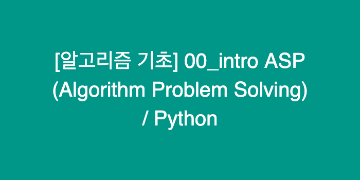 [알고리즘 기초] 00_intro ASP (Algorithm Problem Solving) / Python 본문